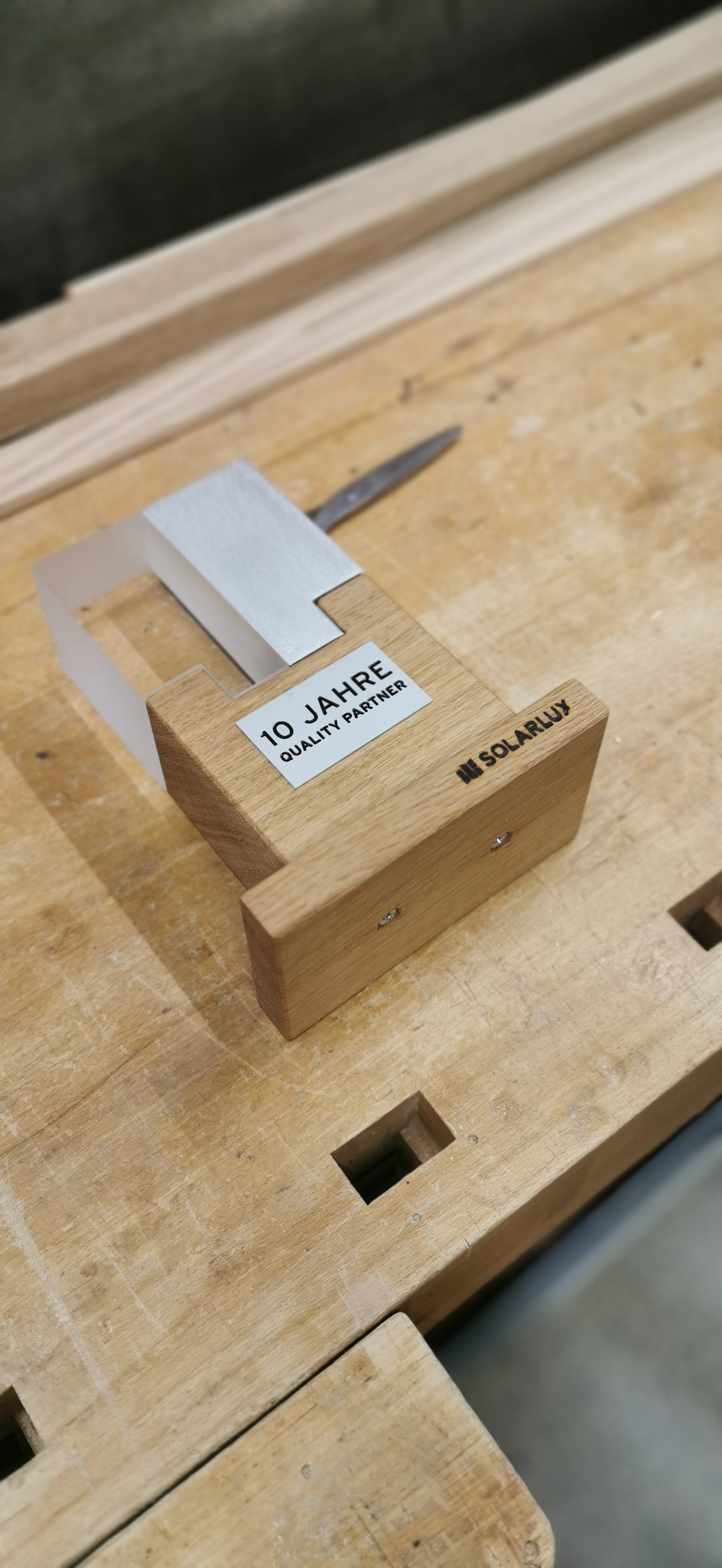 Und schon machten wir uns an die Arbeit und sammelten mögliche Ideen. Eins stand ganz schnell fest, wir wollen den Pokal aus dem Material bauen, mit dem wir auch unsere Produkte produzieren. Also war klar, dass der Pokal aus Holz, Glas und Aluminium bestehen sollte.
